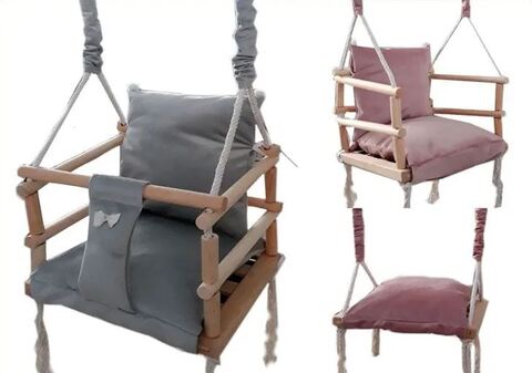 Детские подвесные качели из массива бука. Эти очаровательные детские качели идеально подойдут как для дома, так и для дачи, создавая уютную атмосферу и радость для вашего малыша. При изготовлении используются лакокрасочные материалы на водной основе, рекомендованные для детской мебели и предметов интерьера детских комнат. Данное лакокрасочное покрытие позволяет проводить многократную влажную уборку моющими средствами.