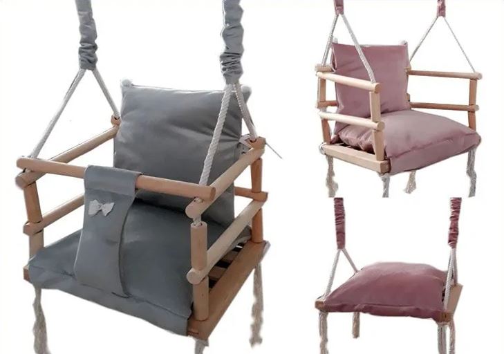 Детские подвесные качели из массива бука. Материал качелей легко моется. Эти очаровательные детские качели идеально подойдут как для дома, так и для дачи, создавая уютную атмосферу и радость для вашего малыша. При изготовлении используются лакокрасочные материалы на водной основе, рекомендованные для детской мебели и предметов интерьера детских комнат. Данное лакокрасочное покрытие позволяет проводить многократную влажную уборку моющими средствами.